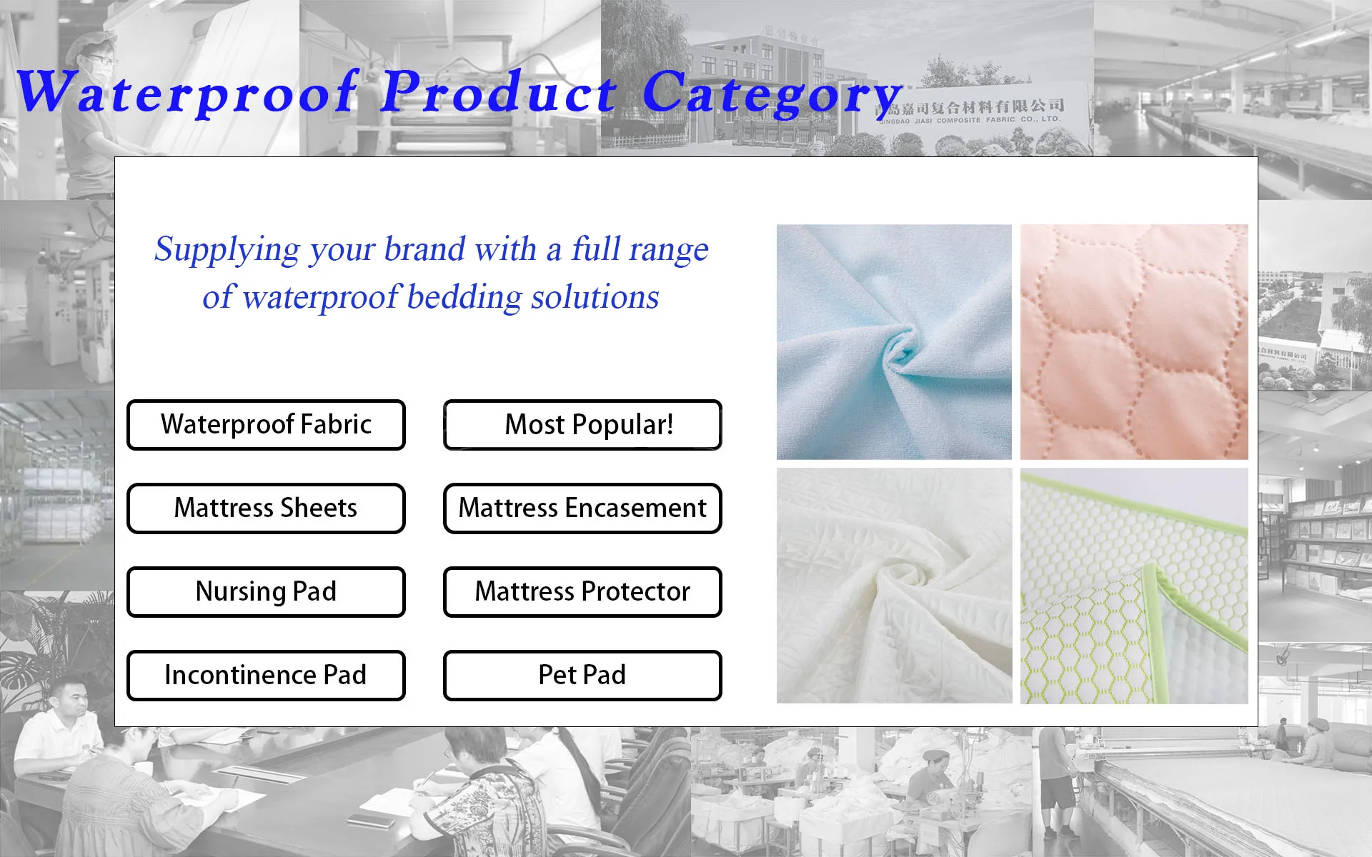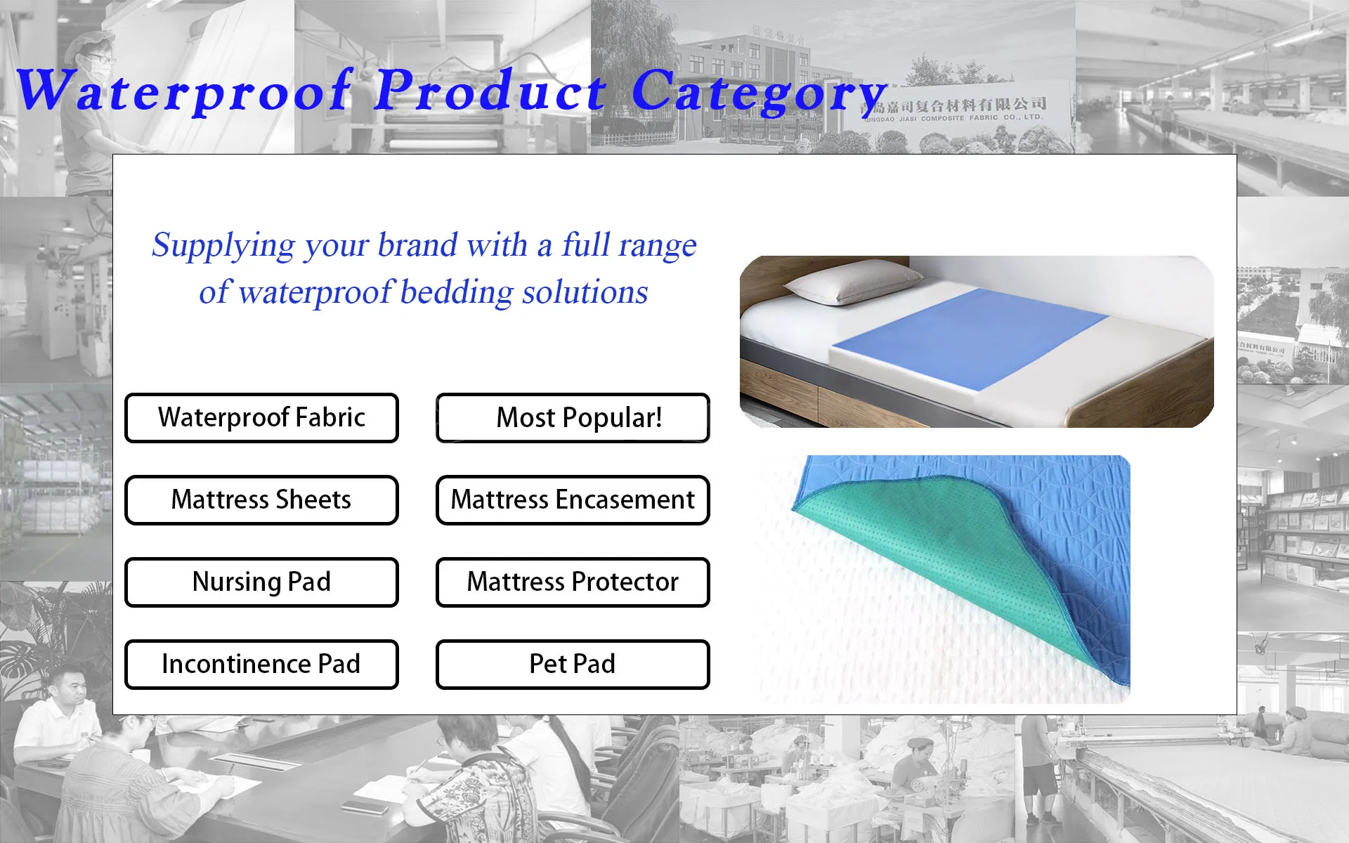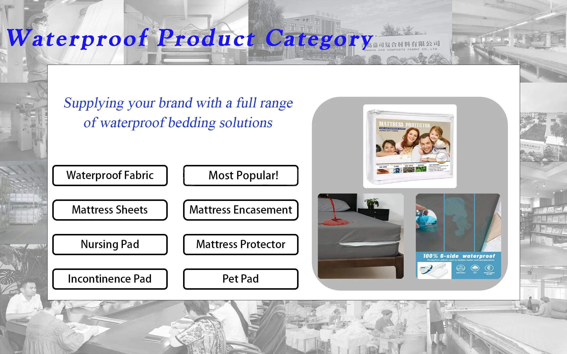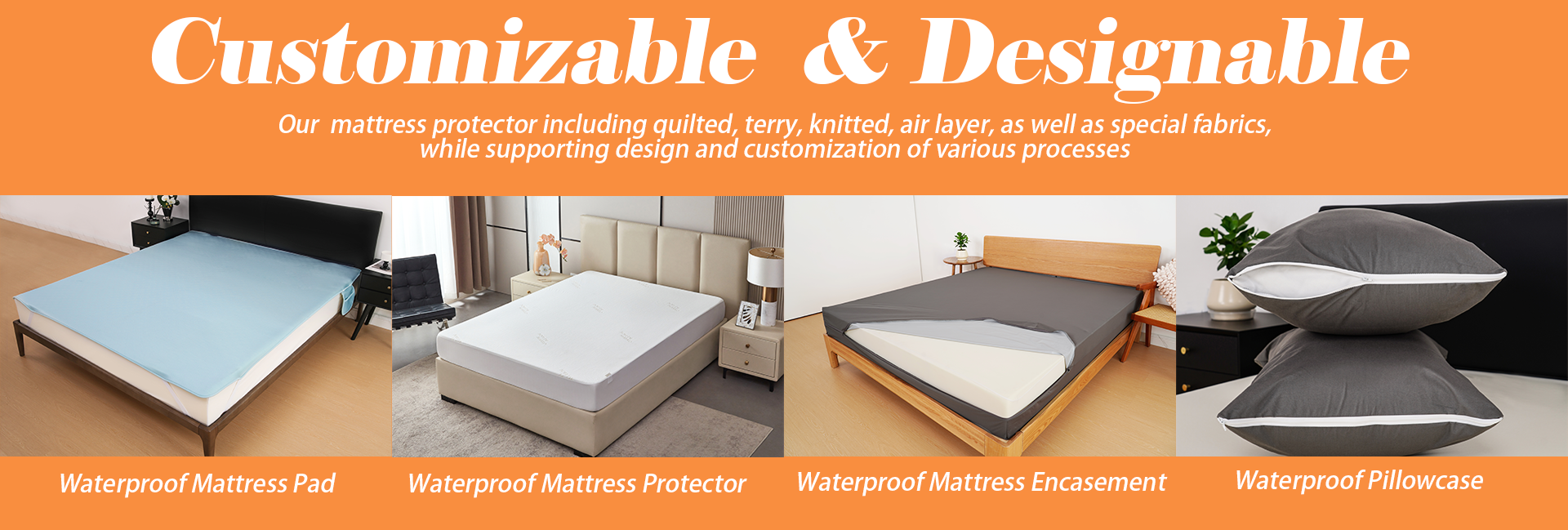 Main categories: Waterproof Mattress Protector, Waterproof Mattress Cover, Waterproof Incontinence Care Pad, Waterproof Pillow Protector, Waterproof Mattress Encasement
