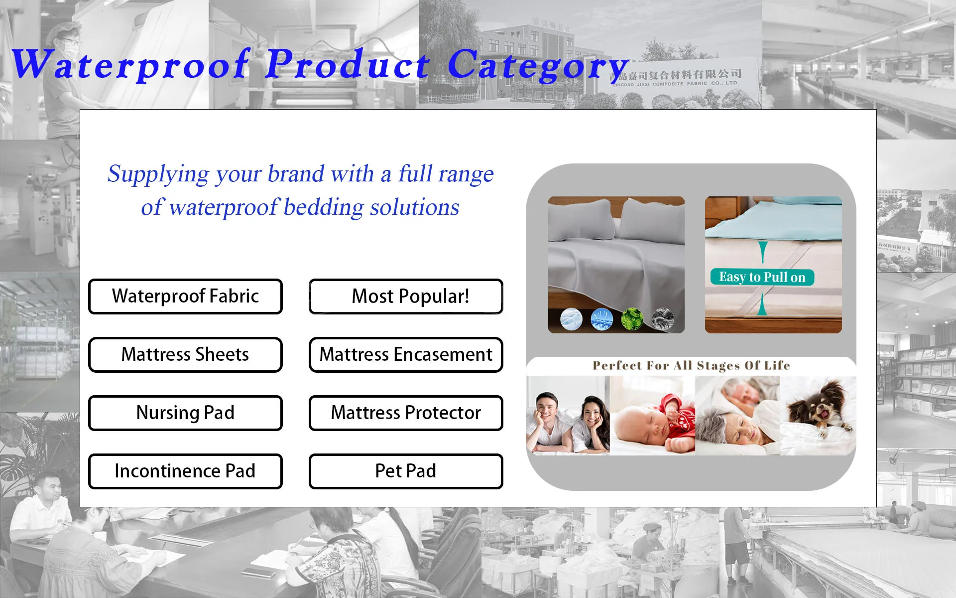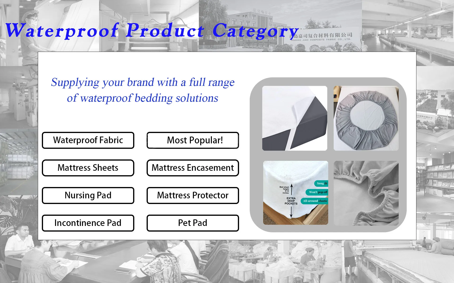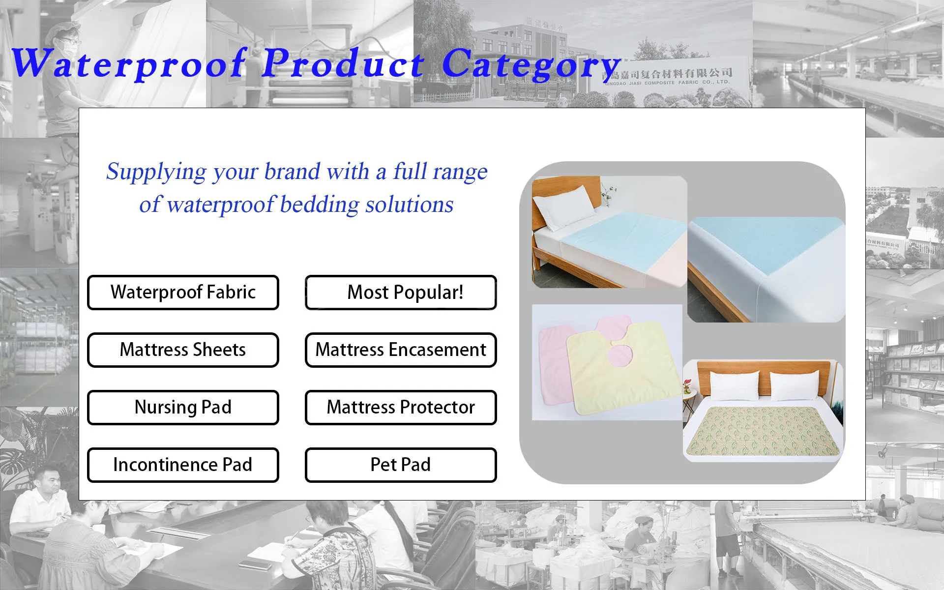 Main categories: Waterproof Mattress Protector, Waterproof Mattress Cover, Waterproof Incontinence Care Pad, Waterproof Pillow Protector, Waterproof Mattress Encasement