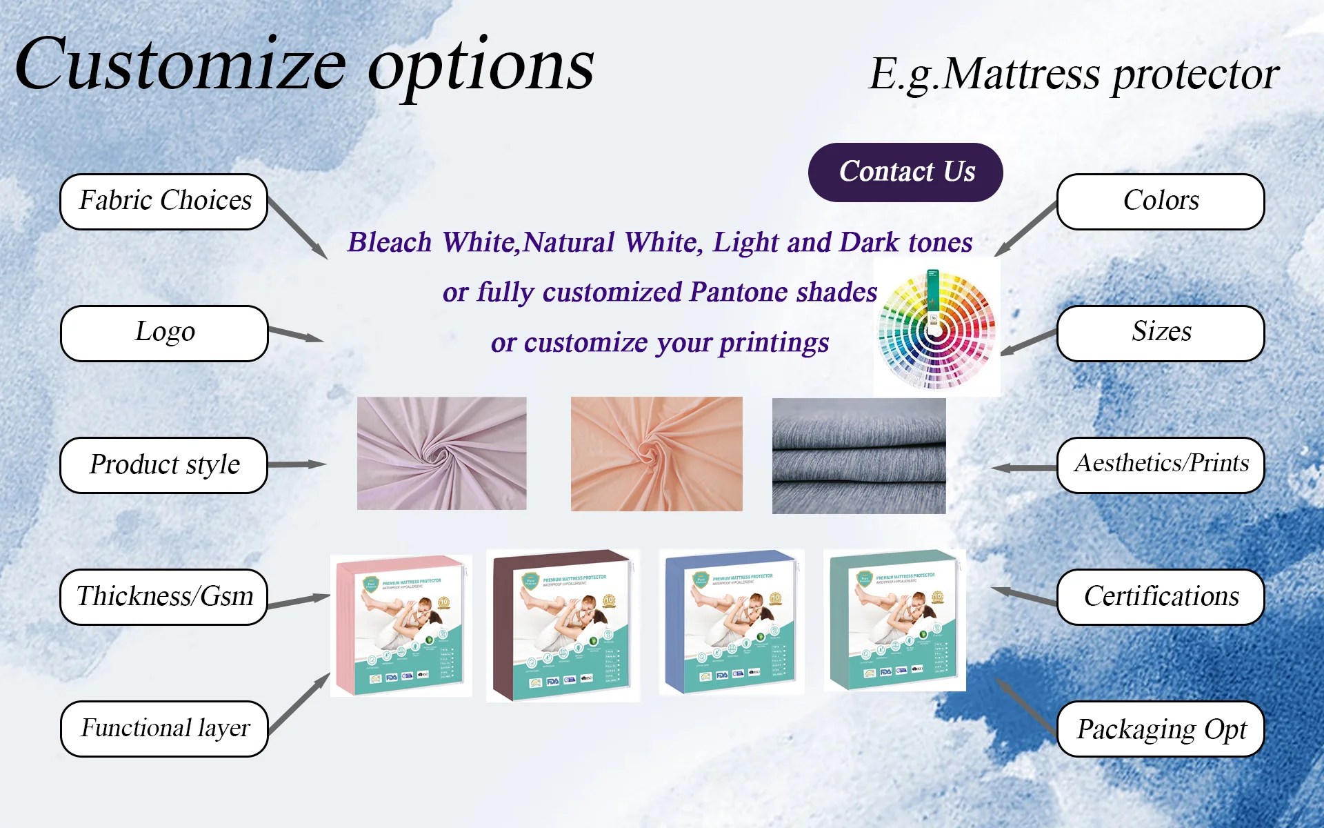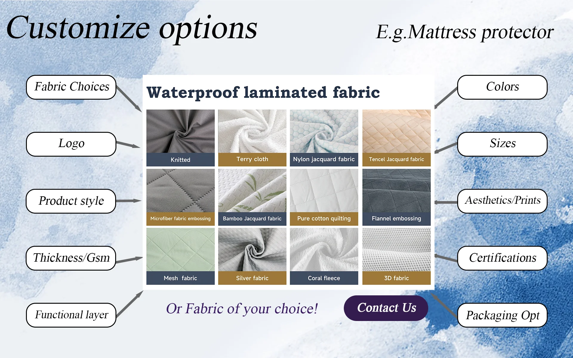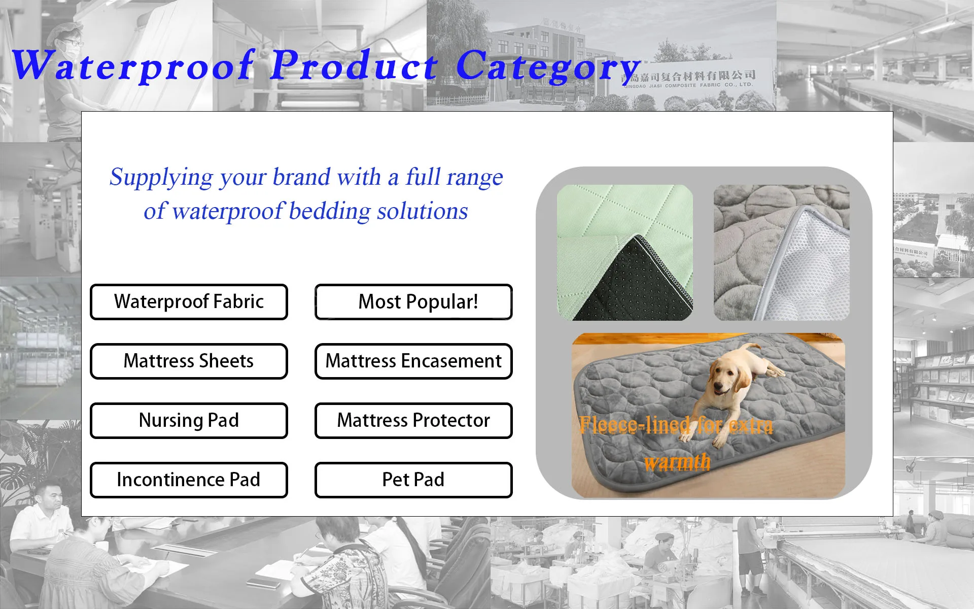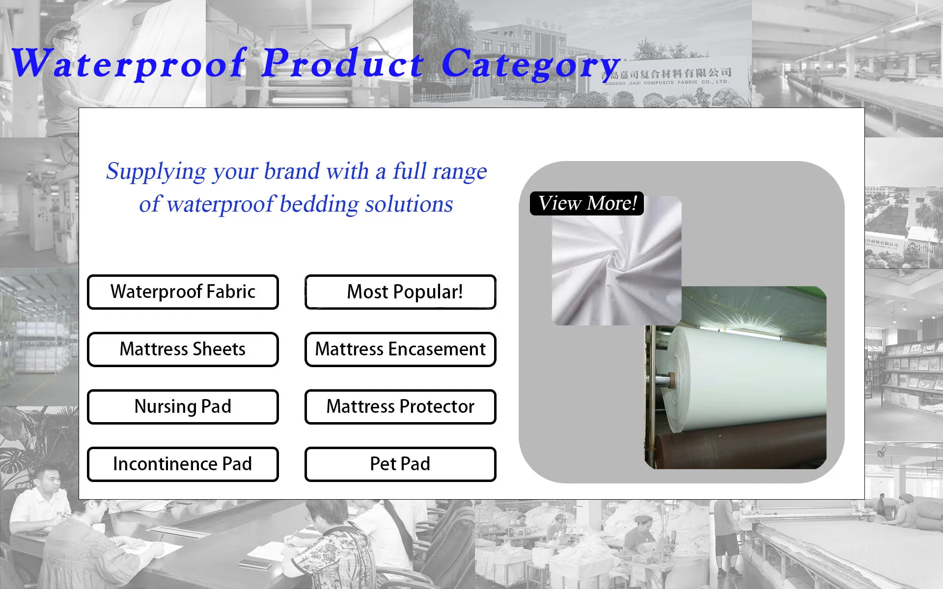 Main categories: Waterproof Mattress Protector, Waterproof Mattress Cover, Waterproof Incontinence Care Pad, Waterproof Pillow Protector, Waterproof Mattress Encasement
